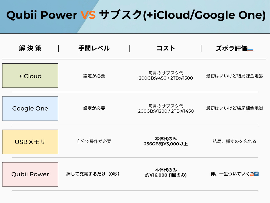 つまり毎日充電する人はiCloud使うのと