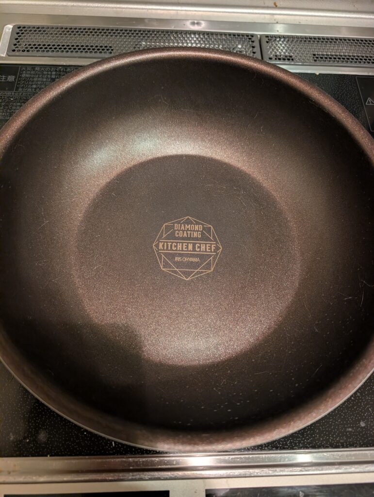 現在使っているのが アイリスオーヤマのダイヤモンドコートフライパンです。
